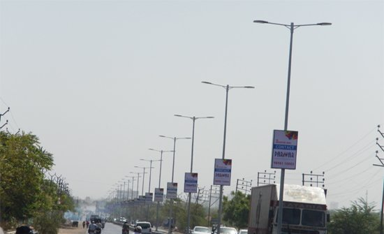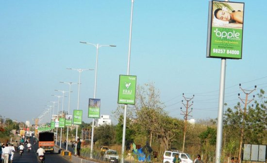 Uni pole Advertising at Heart of Rajkot - Kalawad Road